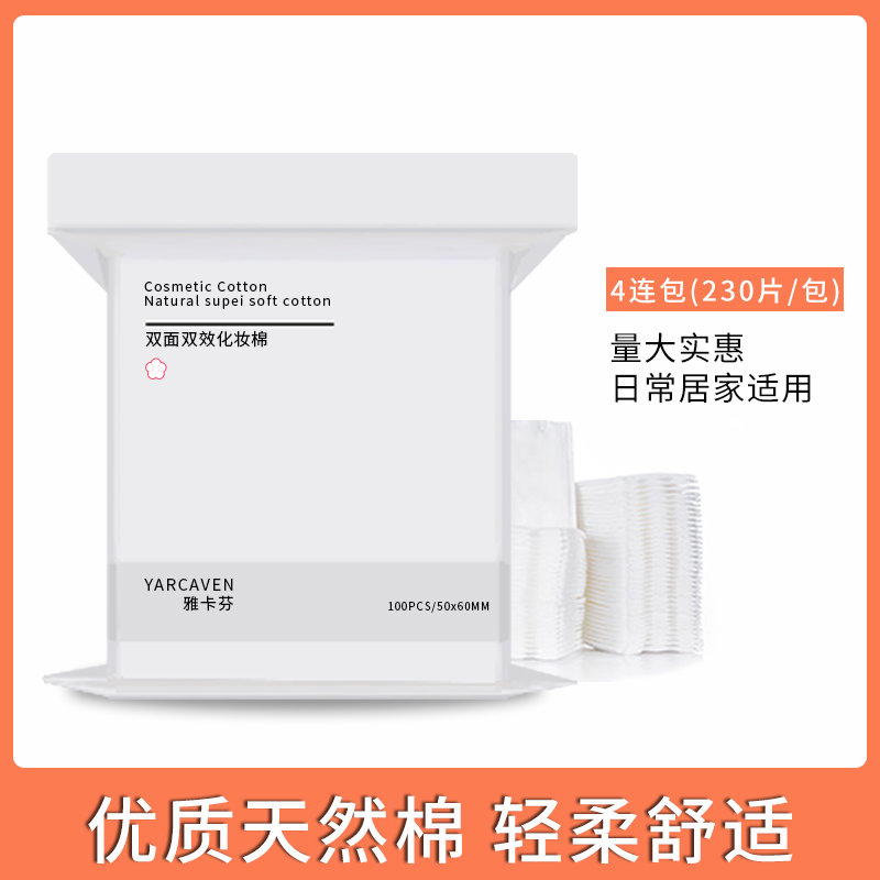 Yakafen double-sided double-effect cosmetic cotton sheet 4 packs pure cotton face wet compress makeup cotton remover cotton sheet makeup tool