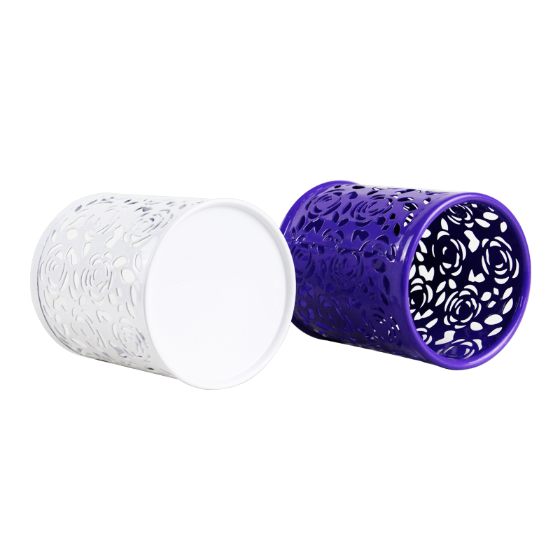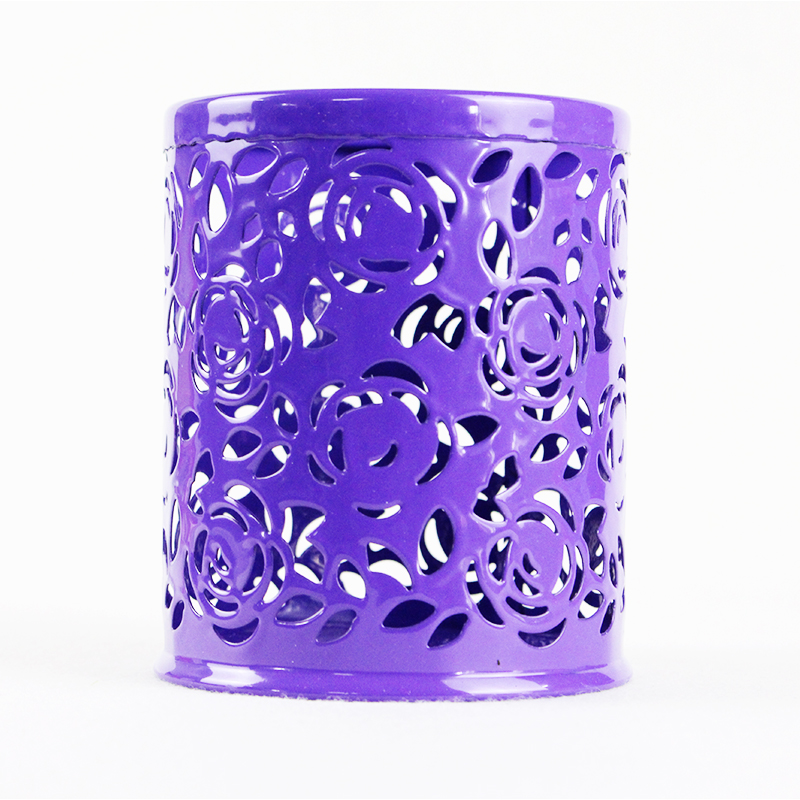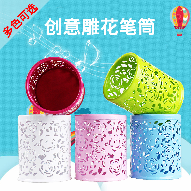 Japan and South Korea creative color pen holder Metal carved hollow fashion desktop storage round pen barrel Office supplies Simple pen holder Exquisite round pen holder Multi-color optional home office pen holder