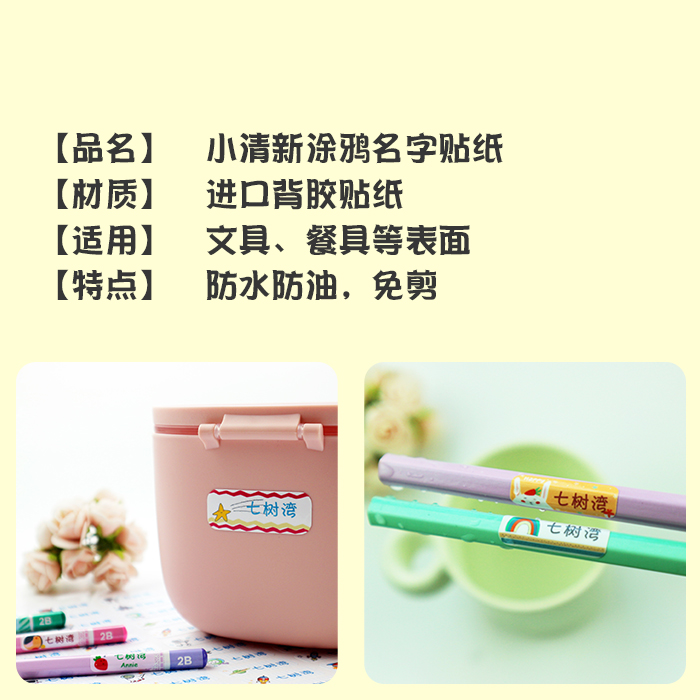 Name tag name word sticker custom made kindergarten baby waterproof stationery book cup label fresh hand-painted