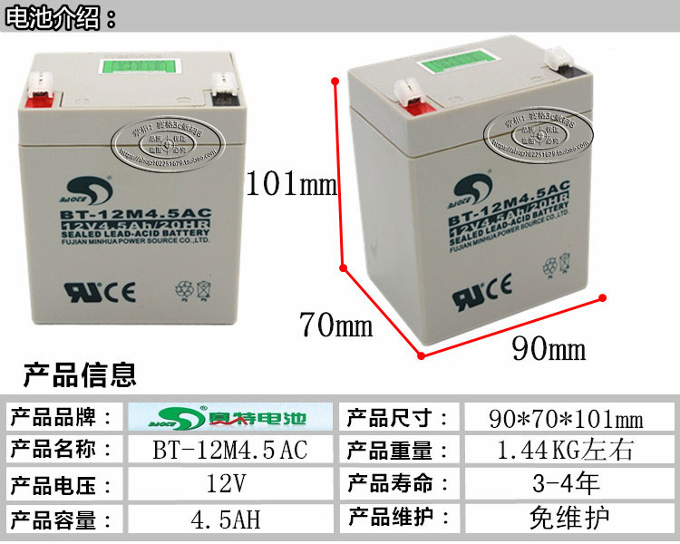 12v4 5AHAC storage battery small sound storage battery roll shutter door roll gate backup power night market light storage battery