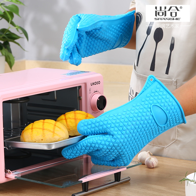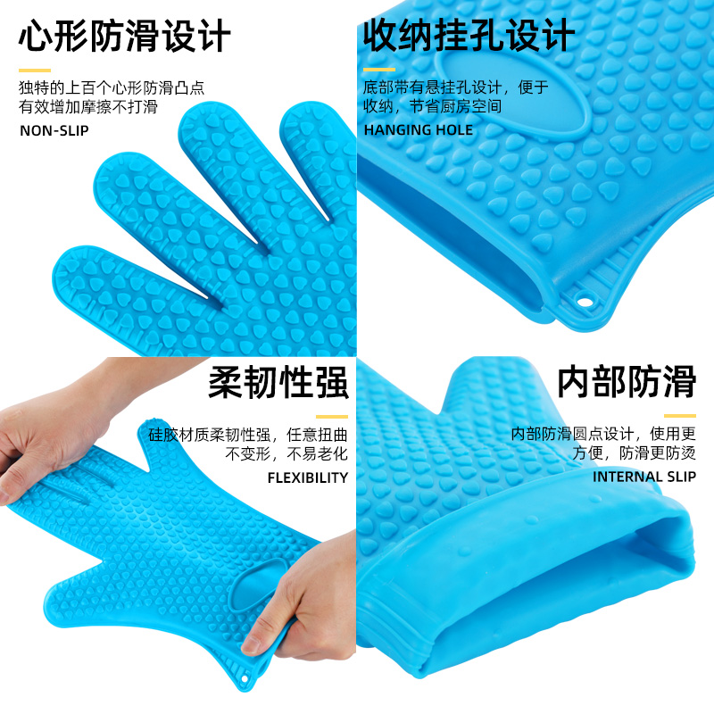Champ Anti-Burn Gloves Anti-Slip Insulation High Temperature Resistant Silicone Glove Kitchen Thicken Five Finger Oven Microwave Oven Gloves