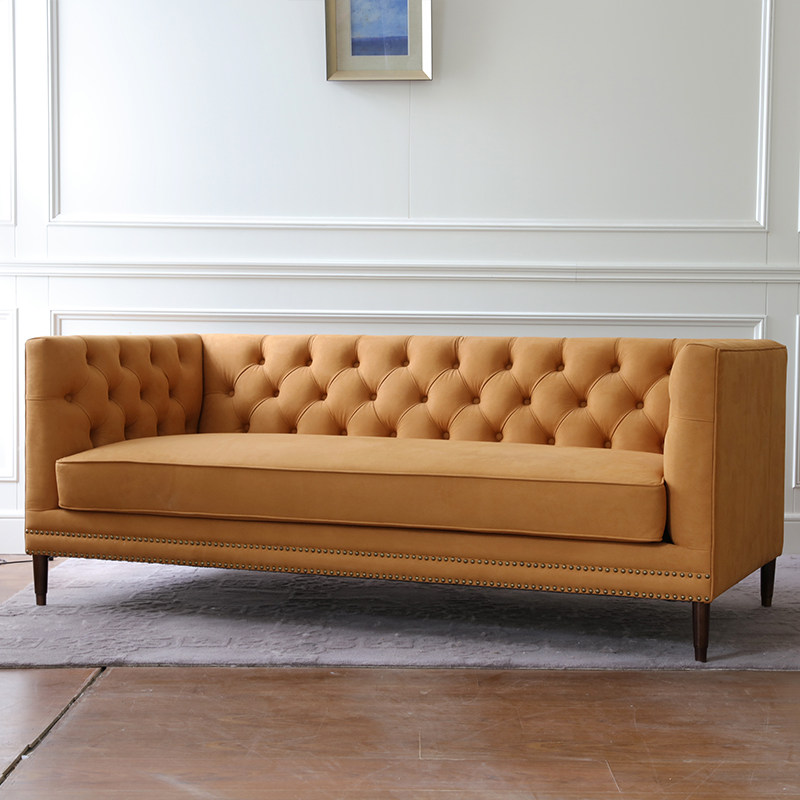 Modern American leather soft bag orange multiplayer three-person trio sofa minimalist pull-up designer-like board room living room furniture