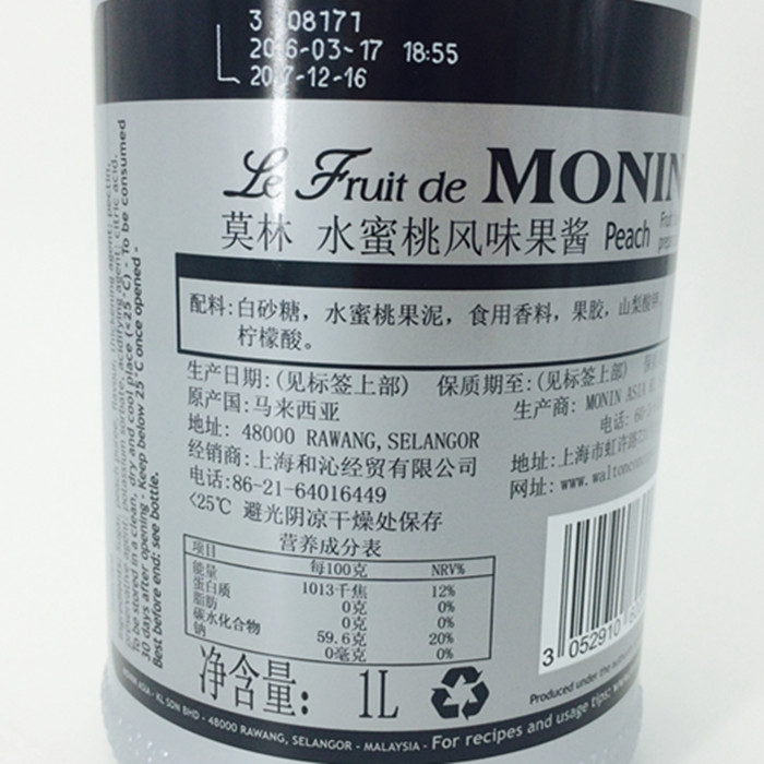 Morin Water Honey Peach Jam MONIN Moni Water Honey Peach Jam fruit puree morin jam 1L