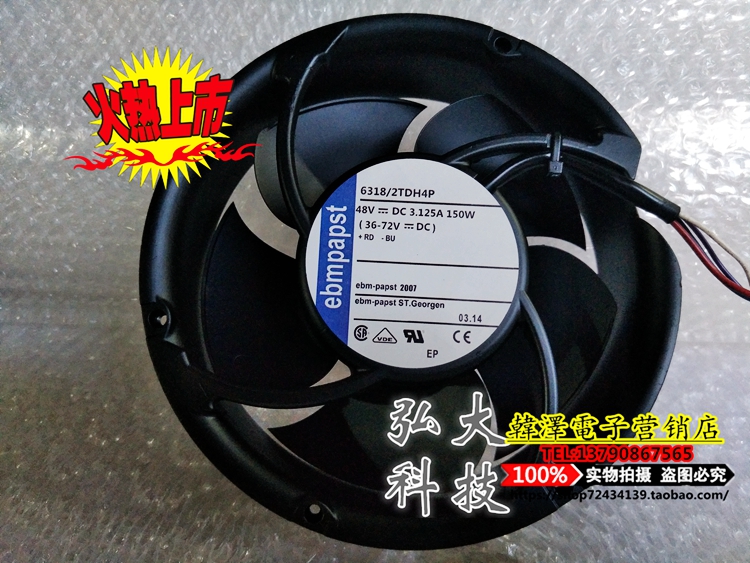 New EBMPAPST 17cm inverter fan 6318 2TDH4P 48V 150W 4-wire speed regulation