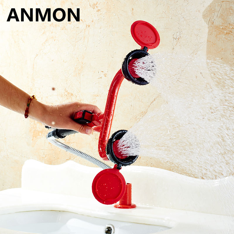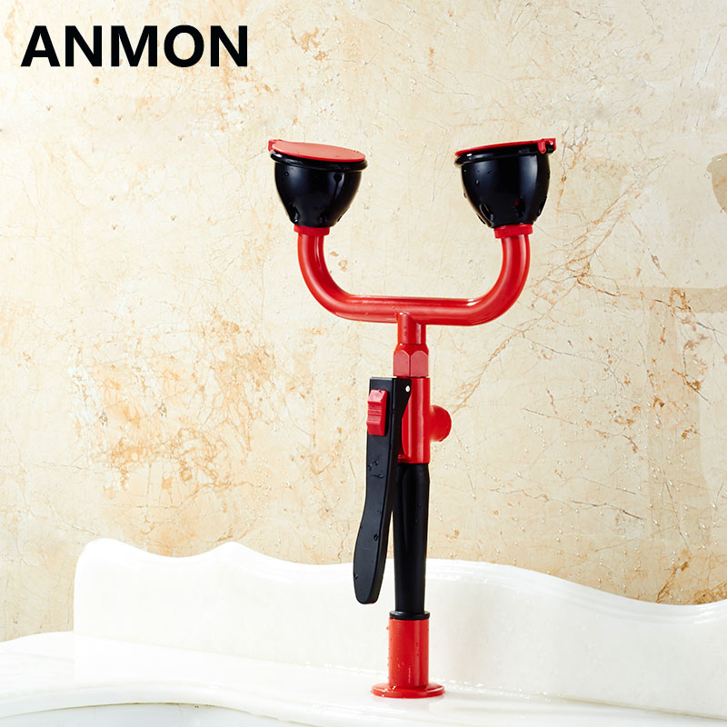 Brass hot and cold faucet + double mouth eyewash (one device to achieve faucet hand washing + eyewash)