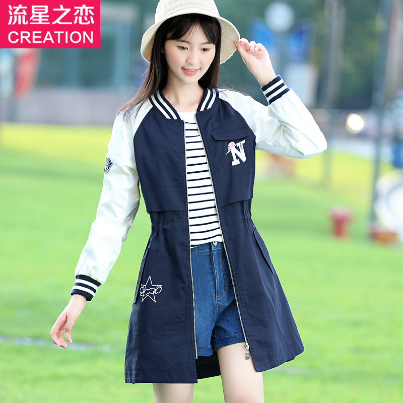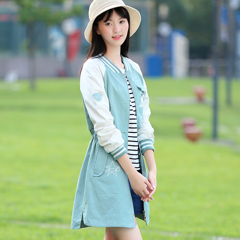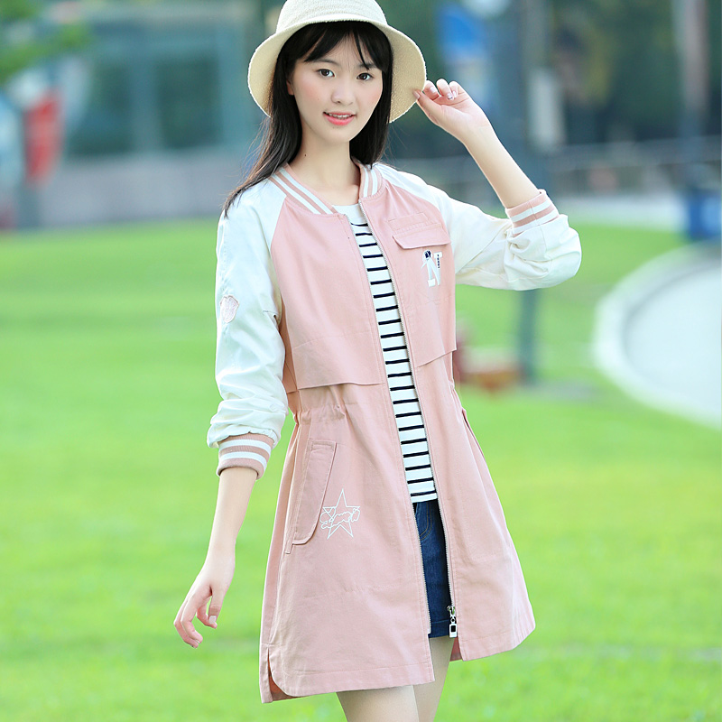 Girls ' college style autumn middle school students Korean slim windbreaker Spring and autumn new middle school students in the long version of the coat tide