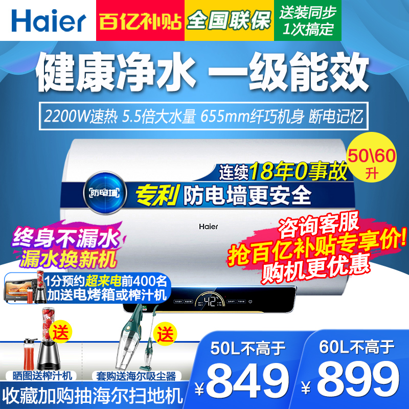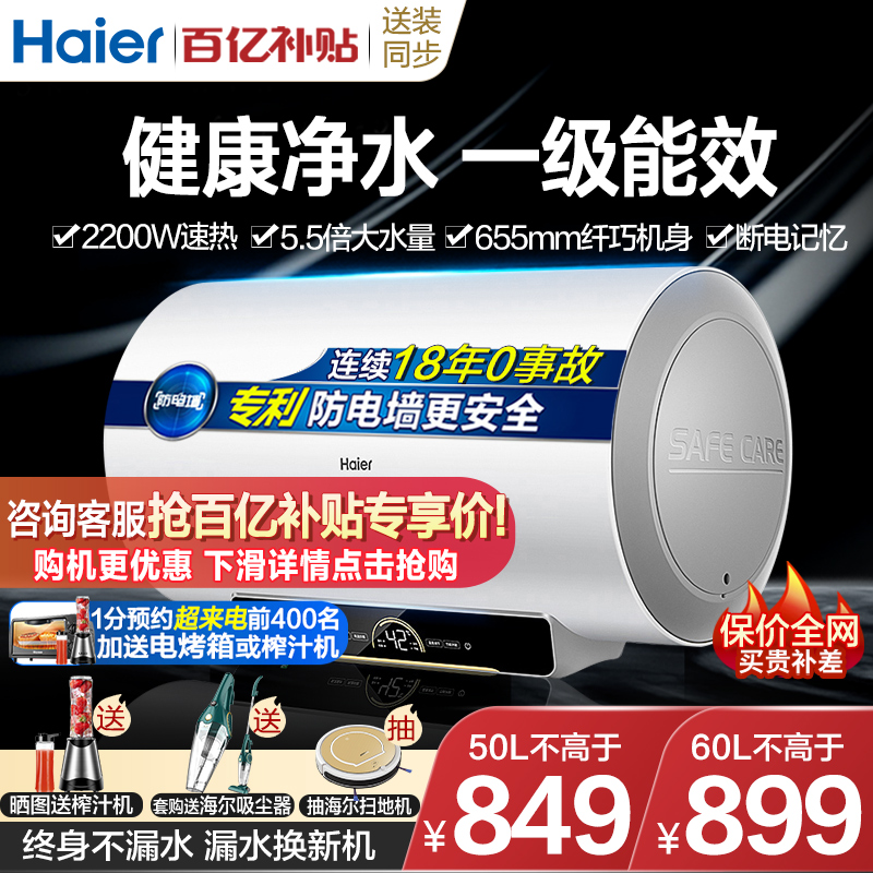 Haier 60-liter water heater electric household water storage bathroom bath first-class energy-saving efficiency Official flagship store 50L