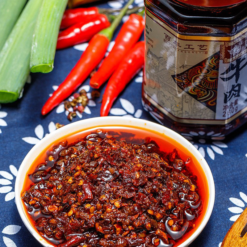 Rapeseed oil, chili, beef, ginger, garlic, salt, monosodium glutamate, bean drum, pepper