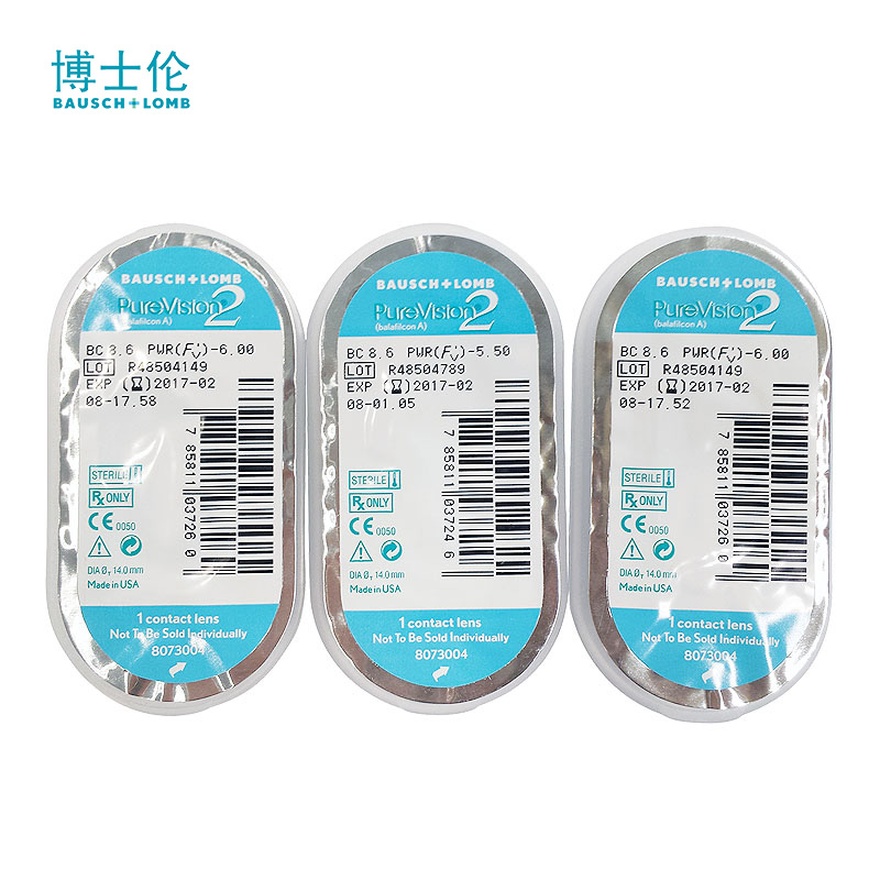 Bausch & Lun contact myopia glasses Moon throw Pure Vision 2 Generation 3-piece box Silicon hydrogel flagship store official website