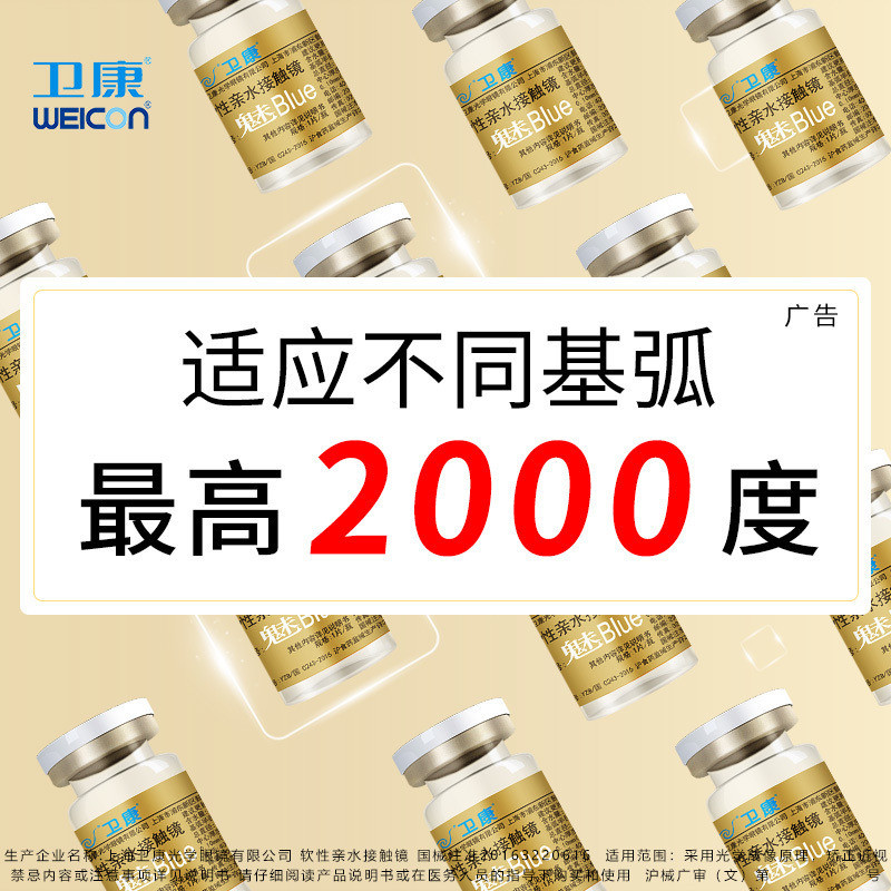 Weikang contact myopia glasses annual throwing box gold charm blue high number oxygen transparent transparent 2 pieces of official website flagship