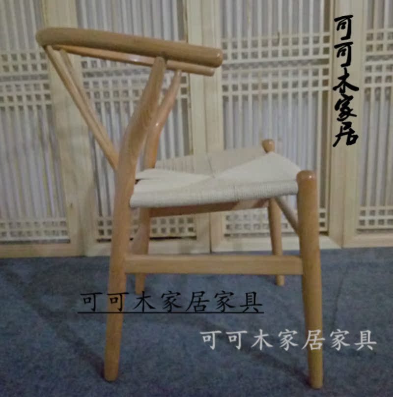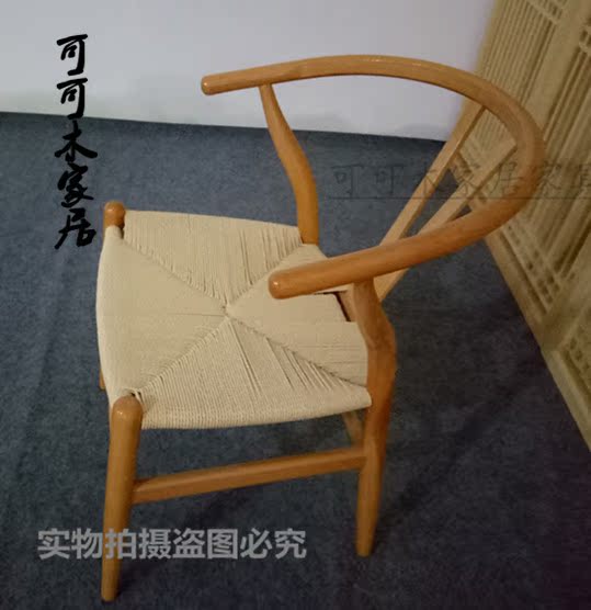 Old Elm Y-ring chair handmade rope book chair Tea Room Cafe dining chair modern simple fashion Chinese back chair