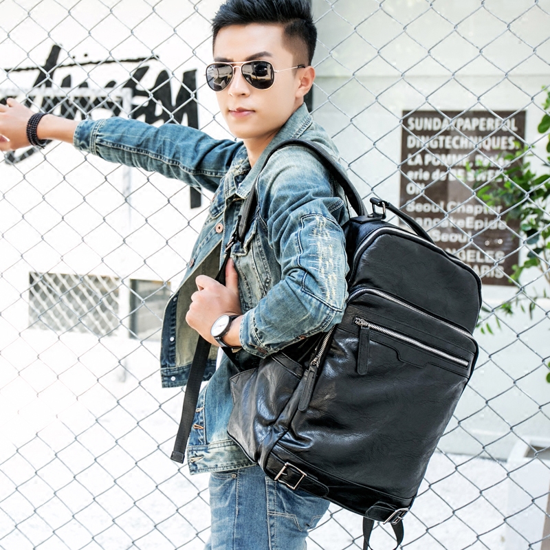 Shoulder bag men's backpack Korean casual short-distance travel bag large capacity computer retro leather soft leather bag
