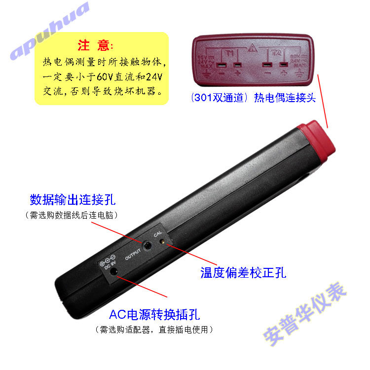 300 single channel standard 301 dual channel standard 309 quad channel thermometer USB data cable software drive power adapter 1 meter thermocouple monitor NR-81530 flat head