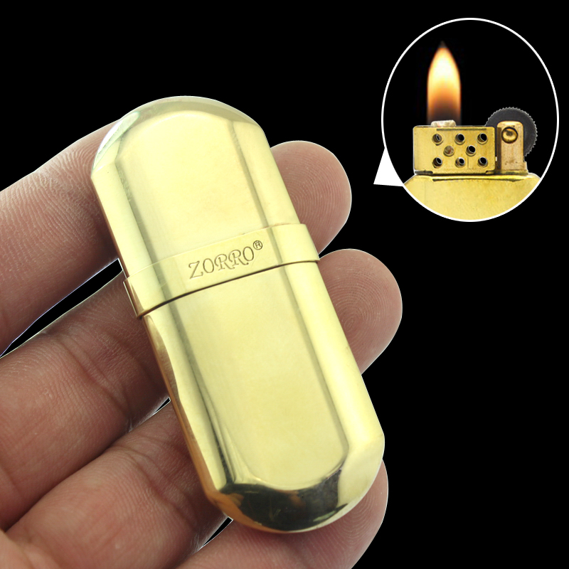 Hong Kong imported kerosene pure copper lighter mini old-fashioned portable pure copper shell grinding wheel retro creative smoking set