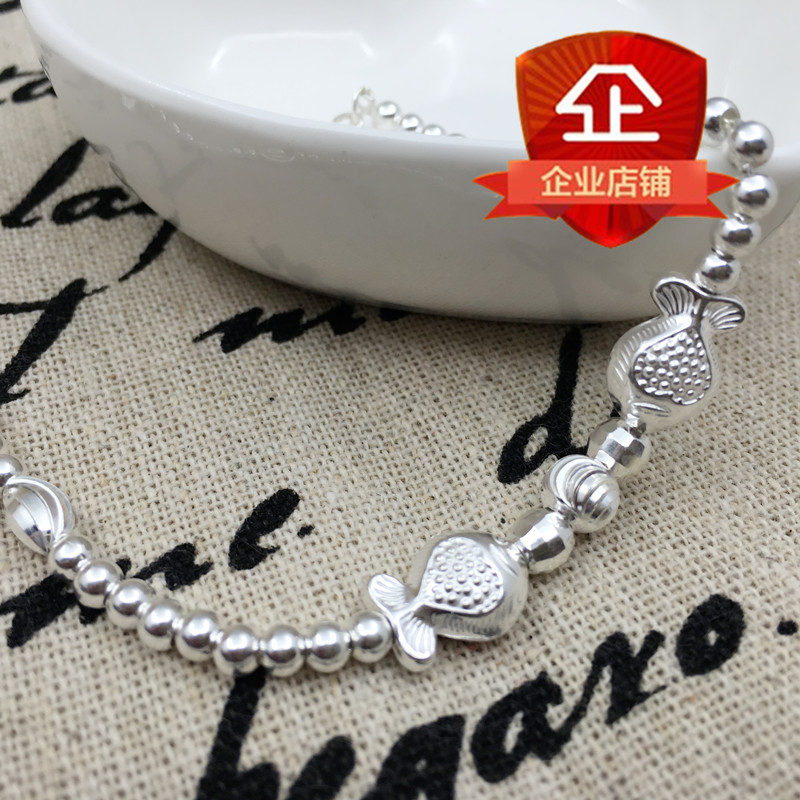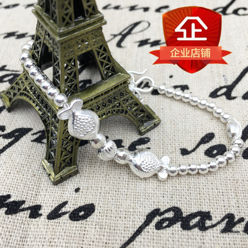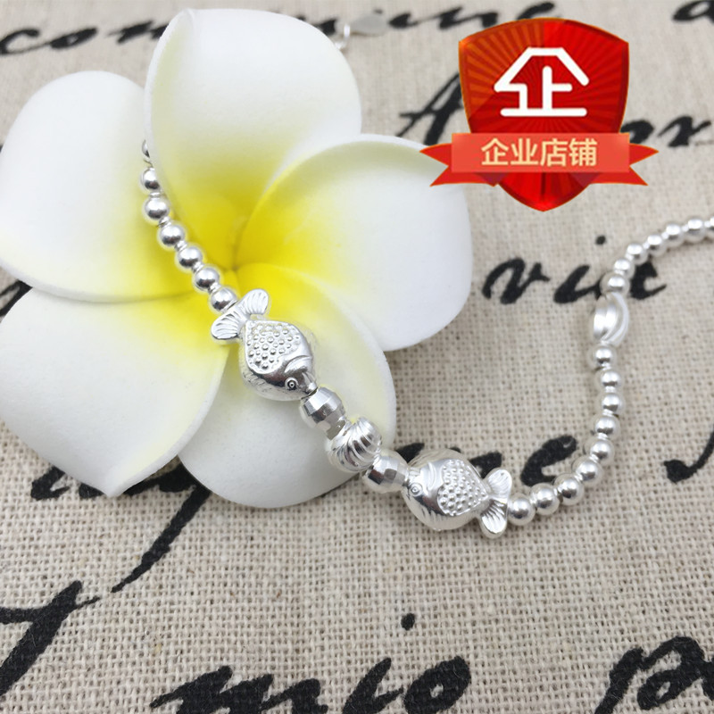 Special cabinet 99 foot silver handmade woman pure silver pro-mouth fish handmade round bead chain Japan-ROK version small fish to kiss chain lettering