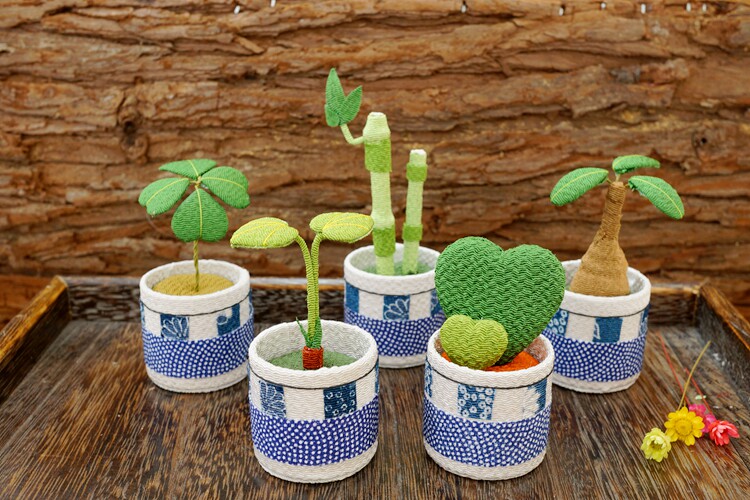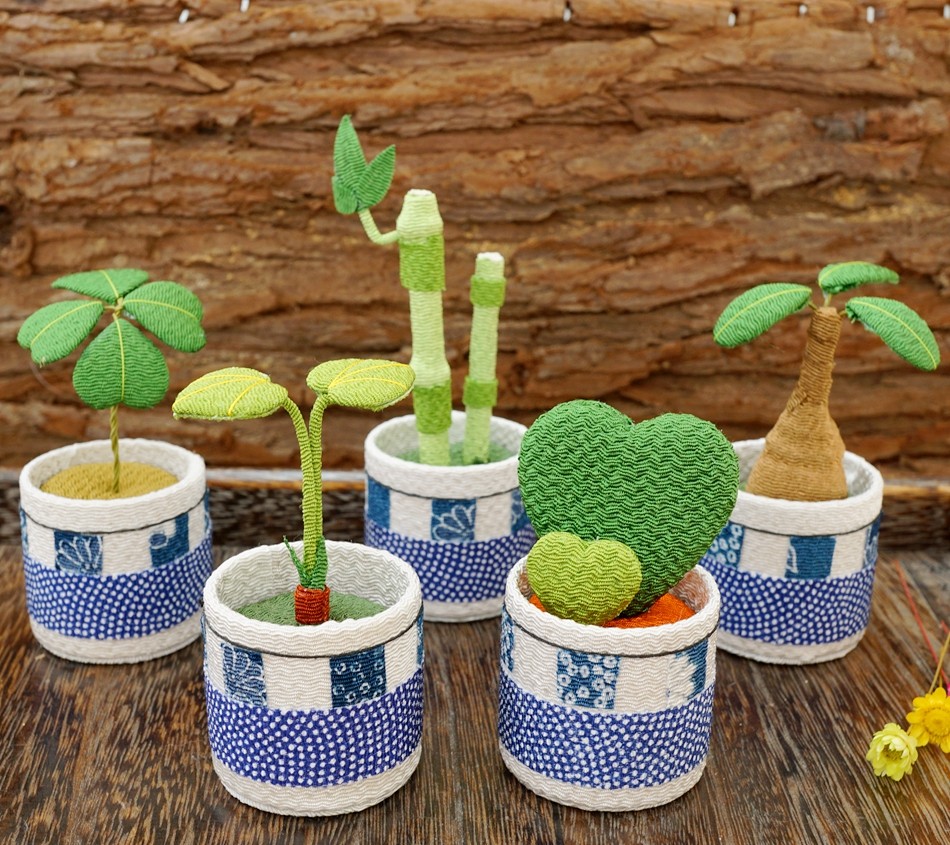Japan Pendulum full handmade cloth Art Four Leaf Grass Bonsai Car Pendulum car Ornament Asakusa Temple