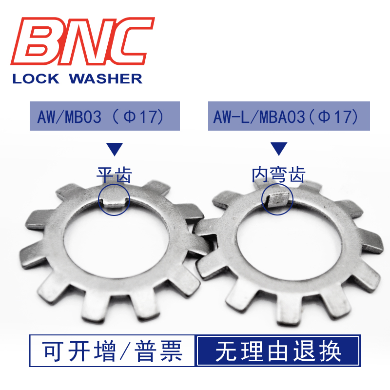 AN03(45#steel lock nut)AN03-S(304 stainless steel lock nut)AW03(45#steel lock washer)Flat tooth AW03-S (stainless steel lock washer