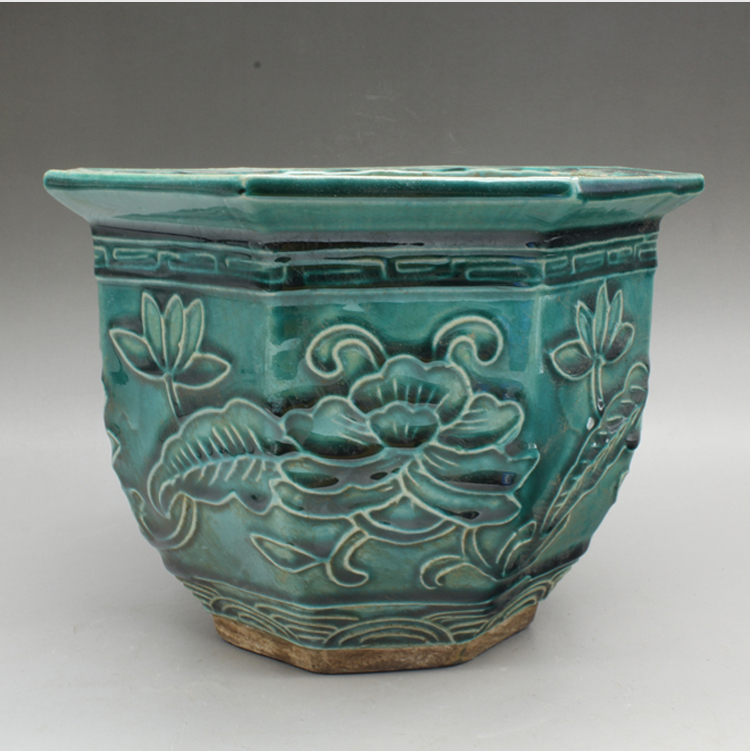 Qingguang Xu green glazed flower pot antique old ceramic old porcelain old porcelain old objects Miscellaneous
