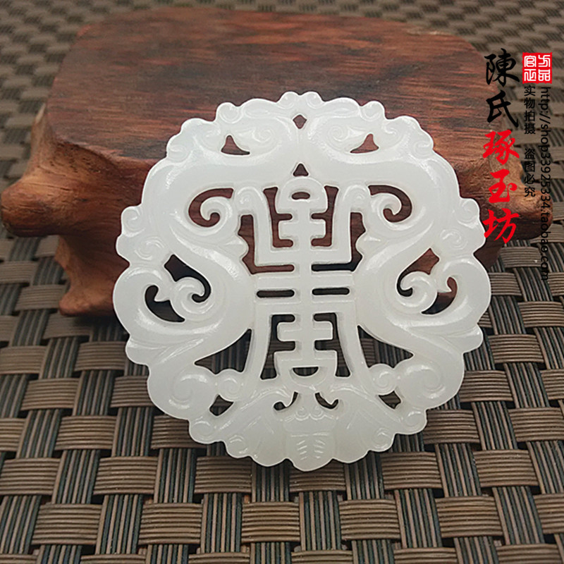 Natural Afghan white jade double-sided hollow out Ssangyong birthday pendant pendant pendant Hanfu jade waist pendant necklace jade pendant