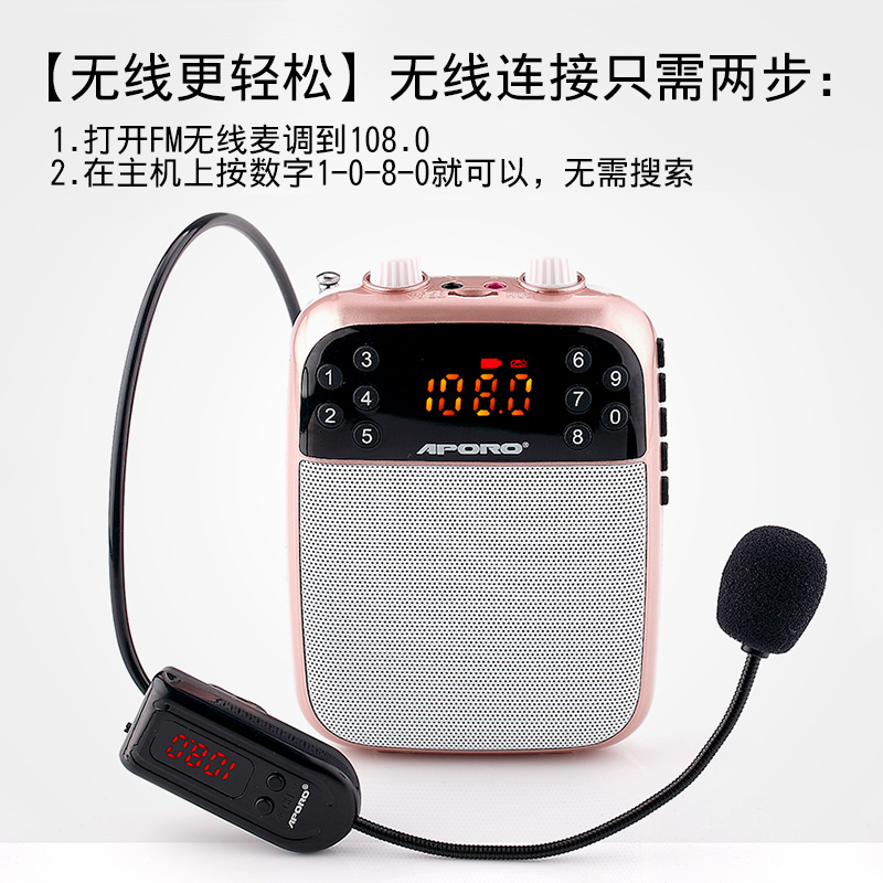 APORO T8 little bee loudspeaker teacher special lecture wireless headset microphone teacher class teaching mini tour guide waist waist wheat high power horn digital music selection player