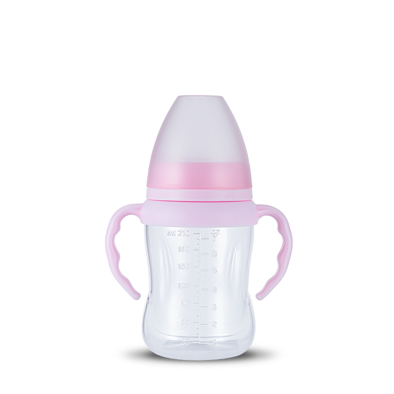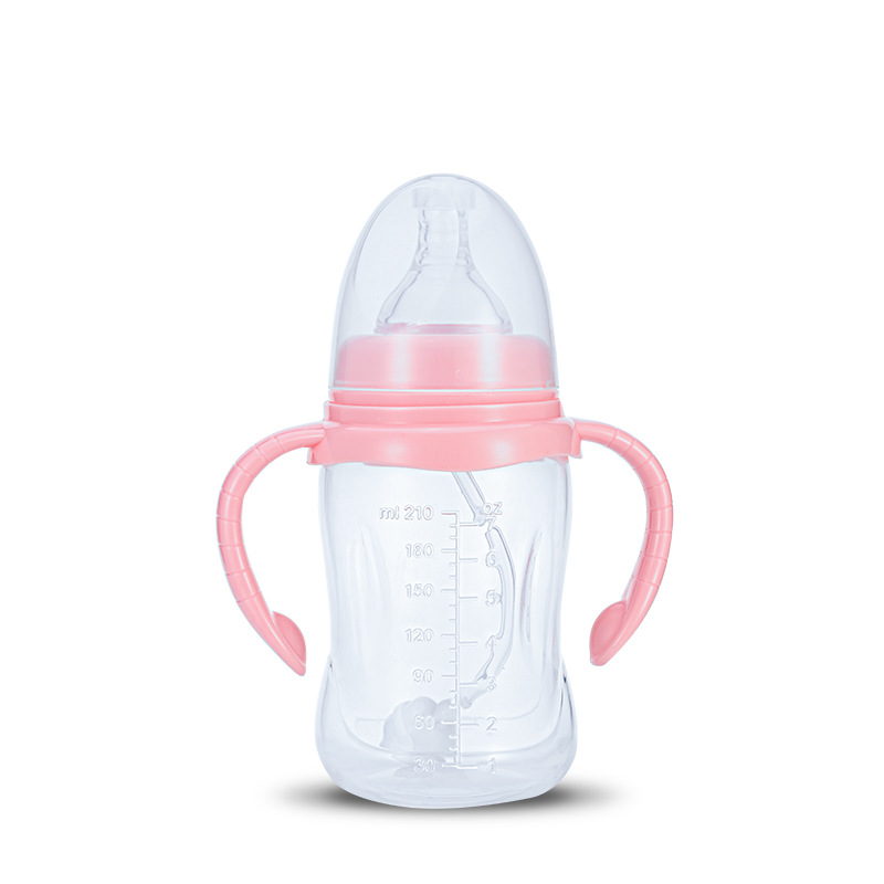 Baby bottle Silicone mouth wide mouth drop proof with straw handle Newborn baby wide mouth diameter plastic drinking bottle