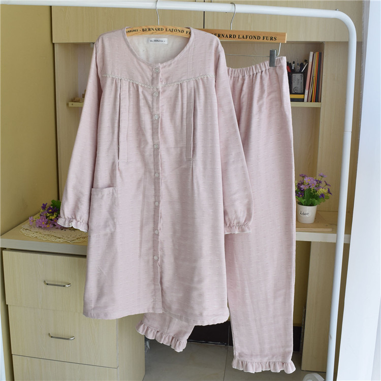 Autumn and winter cotton pregnant women's confinement clothes thick double-layer gauze long-sleeved breastfeeding clothes nursing clothes postpartum pajamas