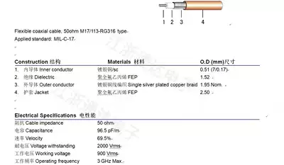RF RF coaxial cable RG316 silver-plated wire double silver wire SFF-50-1 5 high temperature wire 50 Ohm-1 5