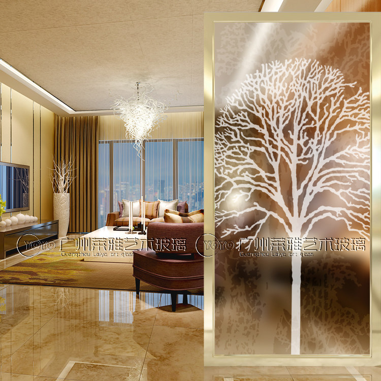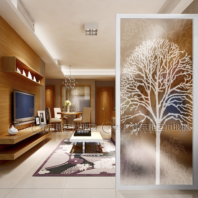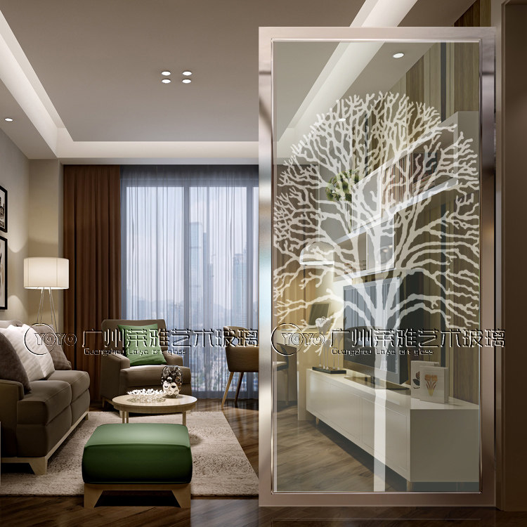 Modern minimalist art glass porch entrance background wall screen shoe cabinet partition carving craft romantic full house