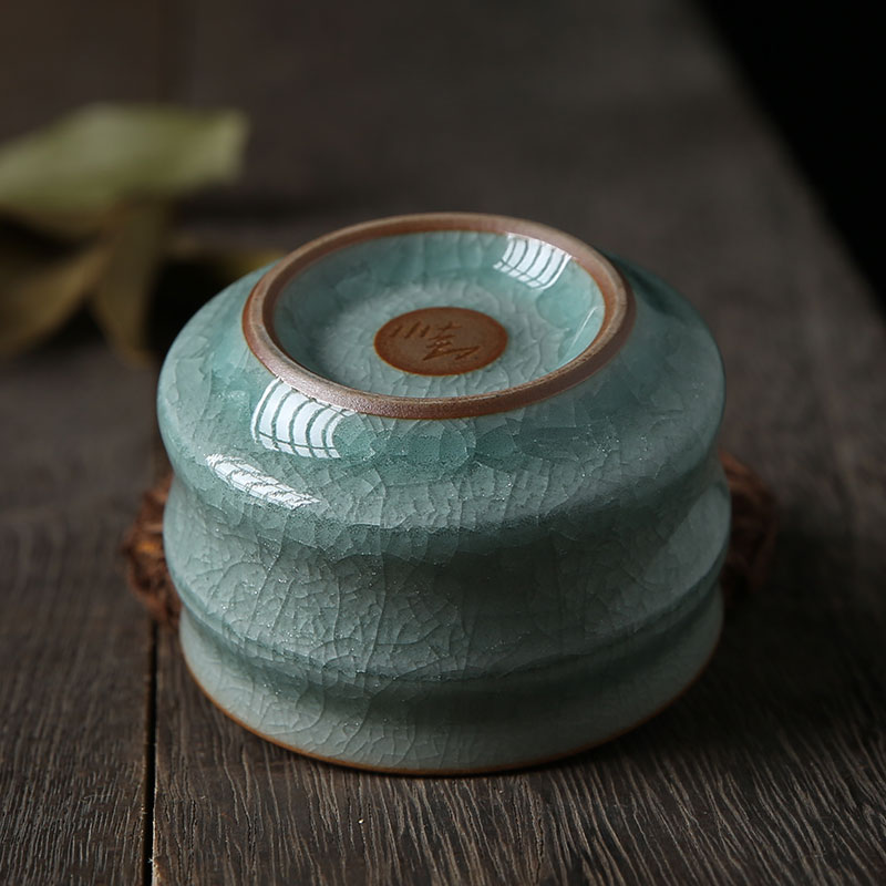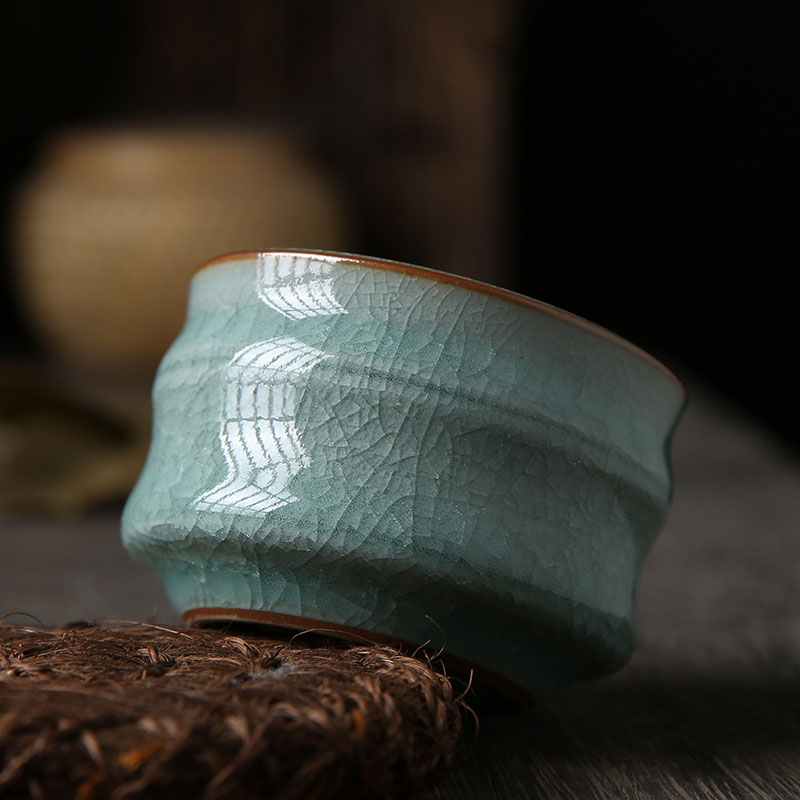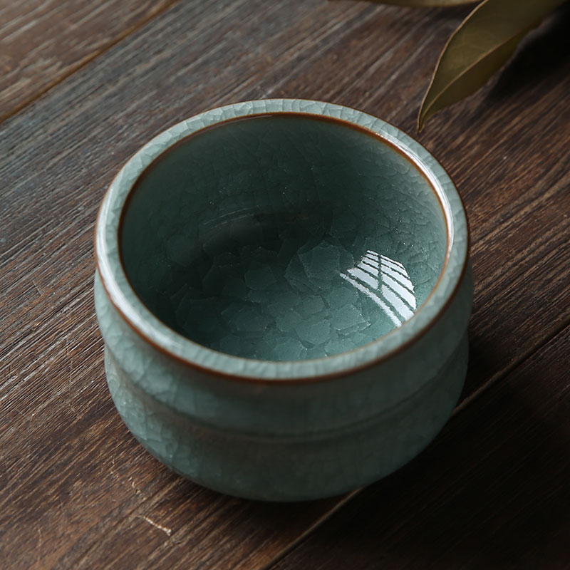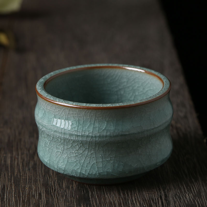 Ceramic kung fu tea set tea cup Ye Xiaochun handmade brother kiln ice crack tea cup straight cup bamboo cup celadon