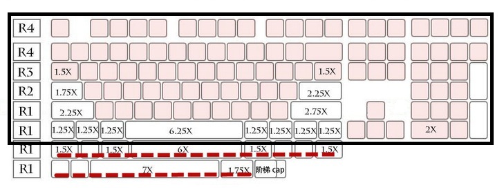 Standard 104 cap Silver edge Standard 104 numeric keypad Enter key key addition Number key Enter key addition 104 keycap 4 blank caps =108 keycaps 4 blank caps