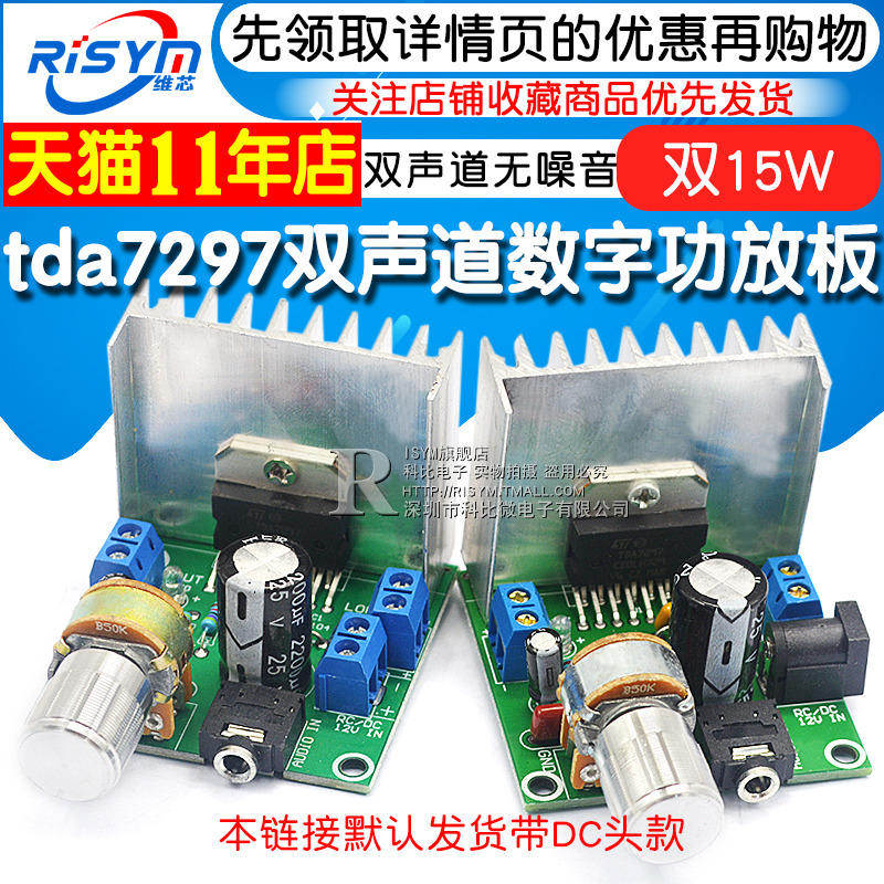 Risym tda7297 digital power amplifier board Two-channel noise-free 12V finished power amplifier board module diy kit 9v 15v 12v speaker audio circuit board power amplifier