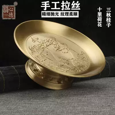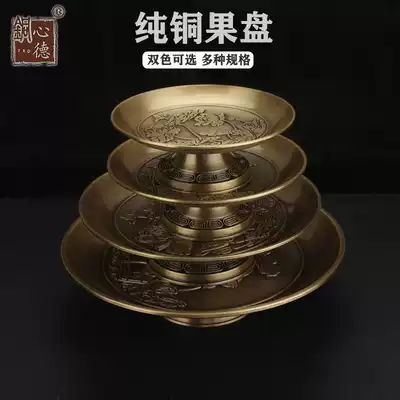 Pure copper Buddha front lotus fruit plate Buddha plate Gong fruit plate offering plate Household living room fruit plate decoration ornaments
