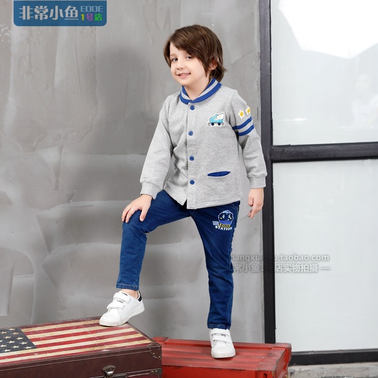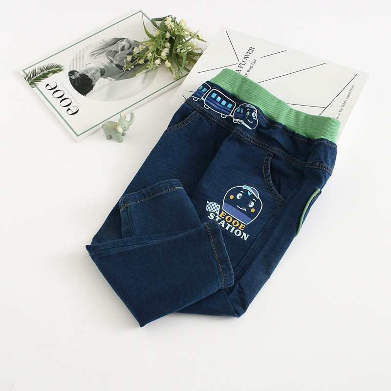 Very small fish 36517 men's, middle and small children's spring and autumn clothing casual sports elastic soft imitation jeans 100-140