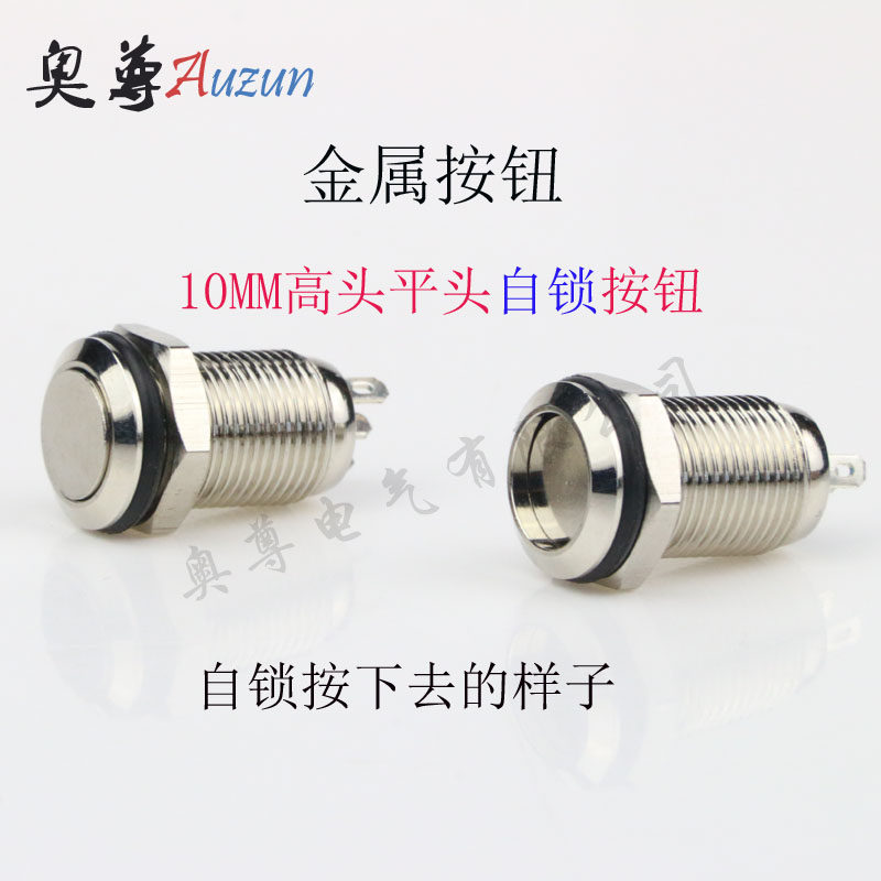 10MM metal button switch self-lock flat head high head three feet one often open a normally closed silver contact point waterproof