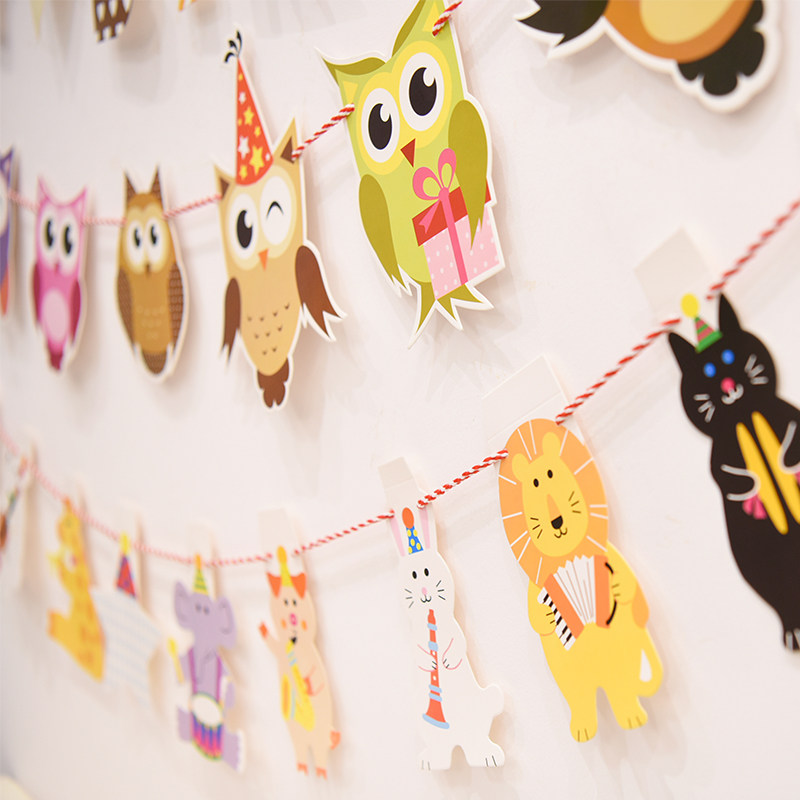 Baby birthday party props decoration decoration Mr. Beard cartoon owl hanging flag dress up supplies pull flower