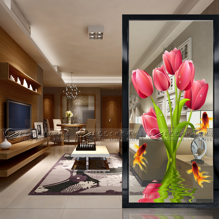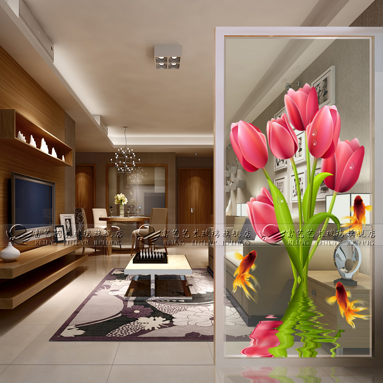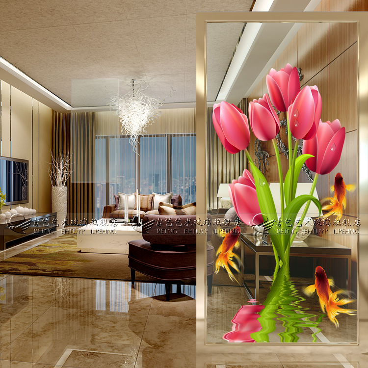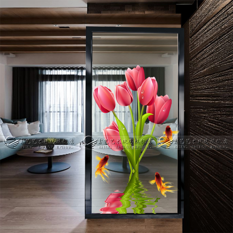 Art glass partition deep carving screen Xuanyan decoration living room kitchen toilet tulip
