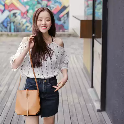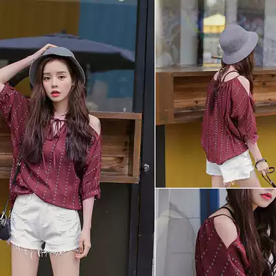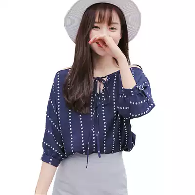 Thin suspender strapless shirt female summer Korean retro student loose chiffon shirt Sweet Seven-cut sleeve Joker T-shirt