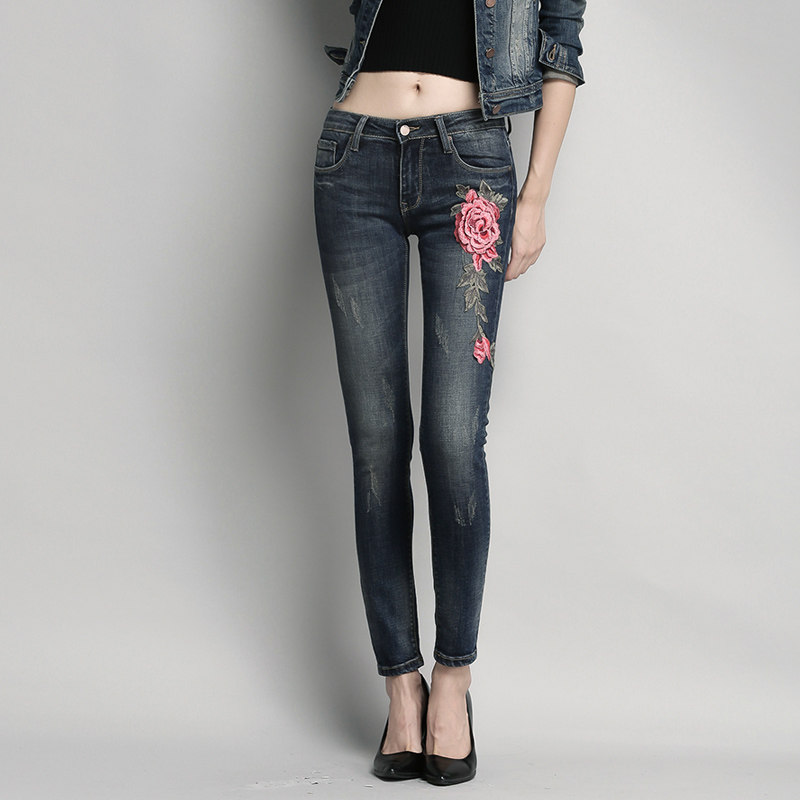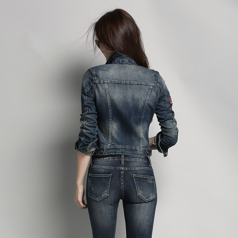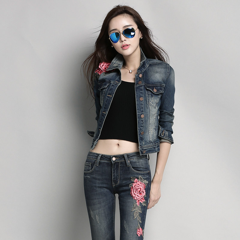 Women's Fashion Suit 2023 Spring and Autumn New Embroidered Long-sleeved Top Denim Short Coat Slim Trousers Two-piece Set