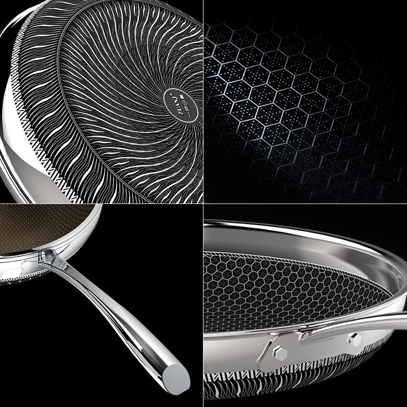 Drilling technique 304 stainless steel flat bottom pan not stained with pan frying pan 28CM stew pan frying pan frying egg pan oven gas stove