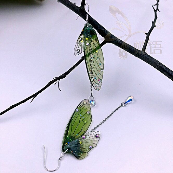 Die language cicada wing earring long tassel temperament female eardrop without earhole earrings earrings clip female personality fashion gift