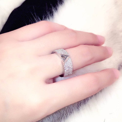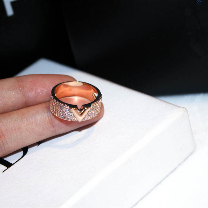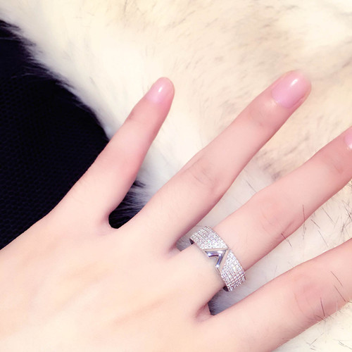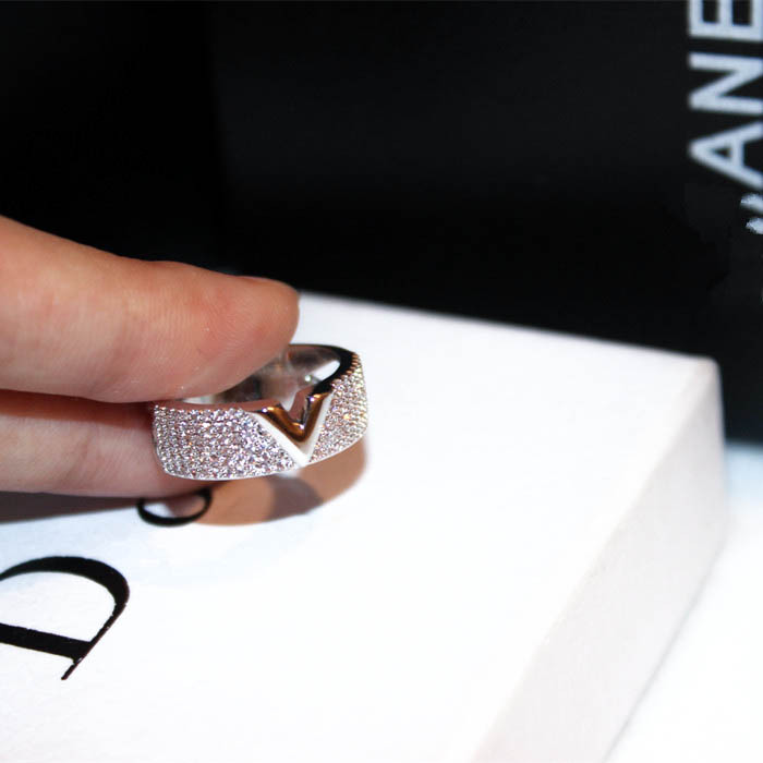 South Korean fashion V Alphabet Inlaid Drilling Ring 2021 New Chains Full Diamond Forefinger Lukewarm Wind 100 Hitch Ring
