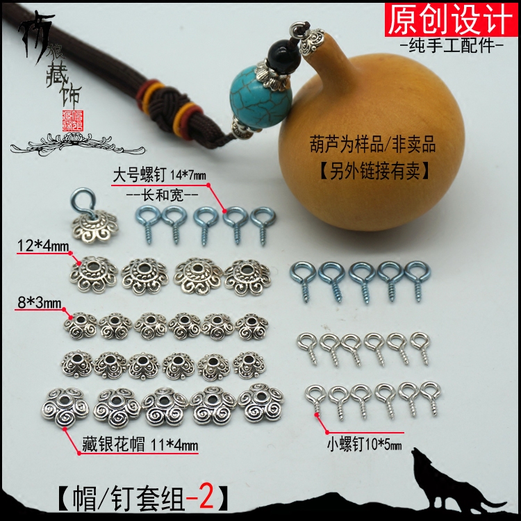 Screw flower holder cap thousand eyes Bodhi gourd Wooden text play screw sheep horn nail sinker head accessories Lanyard pendant head