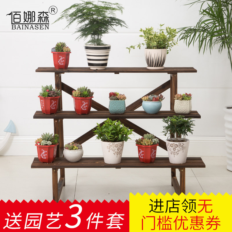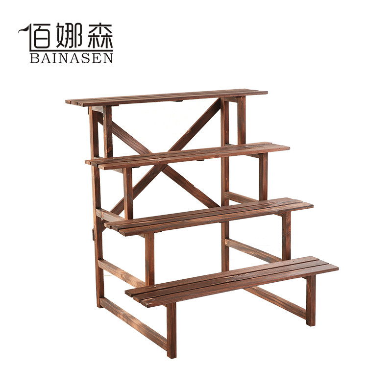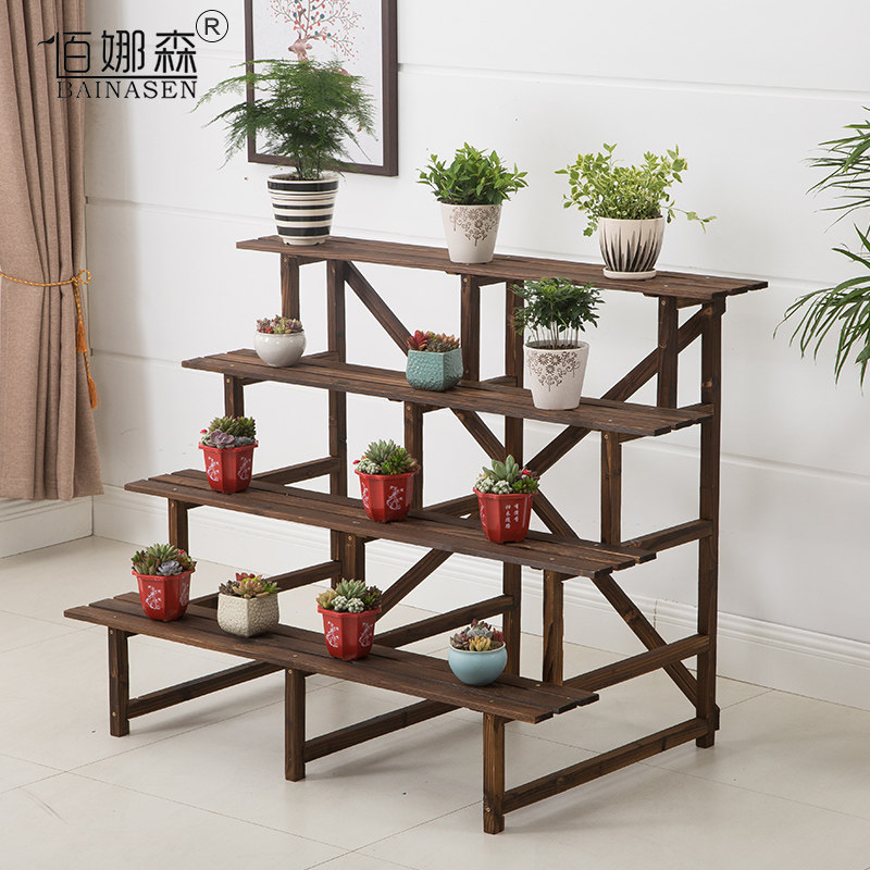 Multi-layer ladder flower stand balcony indoor and outdoor multi-layer carbonized anti-corrosion wood flower shelf solid wood succulent flower stand bonsai