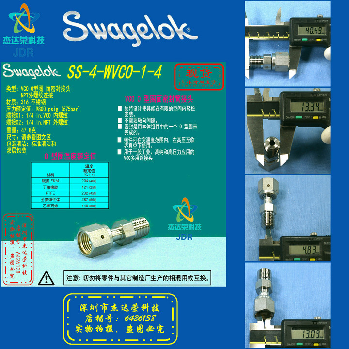 (SS-4-WVCO-1-4) Swagelok Sealock O-ring joint NPT external thread 1 4 in