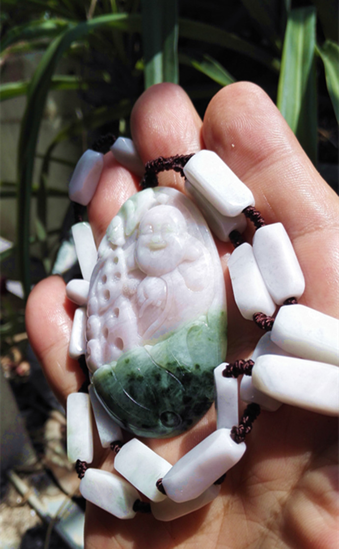 Unique jade Buddha pendant natural Nanyang unique mountain jade hibiscus red laughing Buddha hanging pendant Yupe 21#-Taobao