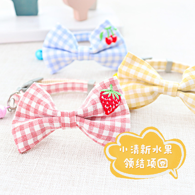 Red (triangle collar) blue (triangle collar) pink (bow collar) yellow (bow collar) blue (bow collar)