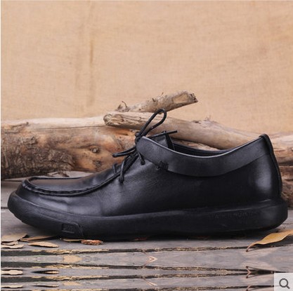 2016 Summer New Breathable Casual Shoes Genuine Leather Han Edition Men's Shoes Lace Bull Leather Shoes Fashion Tide Round Head Vegetarian