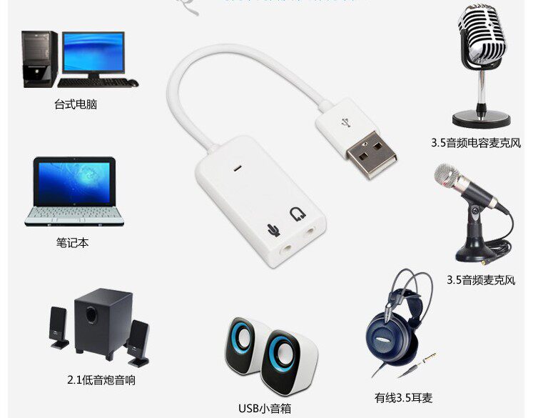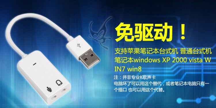Mini USB external connection type sound effect card free of driving table type computer pen electric independent headphone converter wired microphone