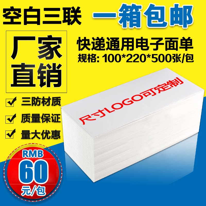 Blank electronic face sheet 100 210 220 500 triple thermal self-adhesive universal express single photocopying paper
