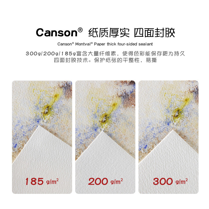 French import Consomes Canson Canson Dream Fails Water colour Benn 300g Coarse Texture Four Sides Seal Glue Color Paper Hand-painted Carry-on Travel Water Soluble Colored Pencil Ben Sketching sketches Blank Benn